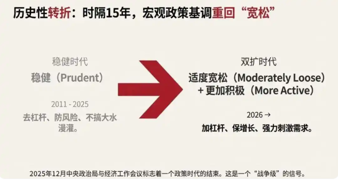 2026年经济风向剧变:从"稳健"到"适度宽松"的政策转向,意味着国家正为经济体注入强心剂。钱将流向核心资产和硬科技领域,而普通人要做的,是把握"新质生产力"风口,用良性负债锁定优质资产,在这场货币宽松与通缩对抗的战役中抢占先机。记住:旧地图找不到新大陆,唯有认知升级才能穿越周期。